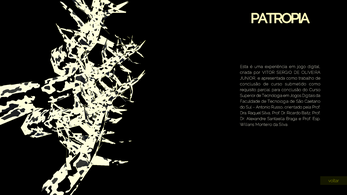Indicado para a faixa etária de 16 anos ou acima, Patropia é um jogo 3D, com visão e tiro em primeira pessoa, inspirado nos jogos do gênero Immersive Sim e Walking Simulator, possuindo uma narrativa imersiva e rica em elementos visuais que ilustram o mundo do jogo e contam a história.